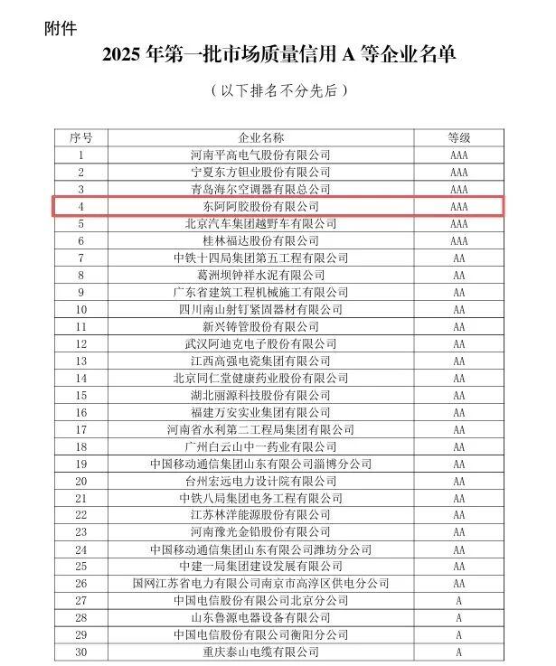 近日imtoken官网下载电脑版,中国质量协会市场质量信用等级评审组对申报A级信用等级的企业进行了材料审核与现场答辩。东阿阿胶股份有限公司(以下简称“东阿阿胶”)在全国30家参评企业中脱颖而出,获评“2025年第一批市场质量信用AAA级企业”。该认证是目前国内企业市场质量信用评价体系中的最高荣誉。